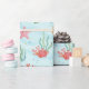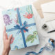 Make a splash with this playful under-the-sea design featuring friendly turtles, clownfish, seahorses, octopuses, starfish, and coral, all swimming across a soft blue background with bubbles and waves. Perfect for kids’ birthdays, ocean-themed parties, or beachside celebrations, this wrapping paper brings colour, character, and fun to every gift.