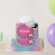 Espirais coloridos, arco-íris com unicórnios, bolhas de cegos para uma torta engraçada para um presente de menina
