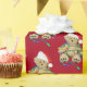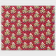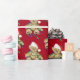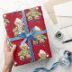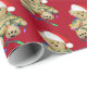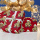 Urso de pelúcia marrom enredado em luzes de Natal sobre fundo vermelho. A cor de fundo pode ser alterada.