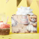 Um charmoso design com um ursinho de pelúcia em tons pastéis, cercado por balões, presentes e estrelas. Decorado com uma terra de bandeiras, é perfeito para convites, cartões de saudação e outros produtos festivos. Uma escolha versátil para eventos infantis, especialmente aniversários.