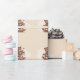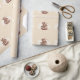 Um papel de embrulho encantador, com uma ilustração esbranquiçada de um urso sorridente montando um cavalo de balanço de madeira contra um fundo macio e manchado. O urso veste um pequeno avental de artesão e segura uma pequena ferramenta de madeira. Perfeito pelos presentes às crianças!