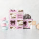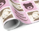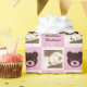 Fundo impressão quadrado rosa com quadrados claros e escuros compensados. Imagem do ursinho-peludo-castanho-escuro em um dos quadrados que são então agrupados através de todo o impressão. *A foto da imagem do bebê é um espaço reservado apenas para você carregar e personalizar com a foto do seu próprio bebê. Não use a foto como sua. Personalizar texto para uma ocasião especial para bebês, como batismo ou primeiro aniversario.
