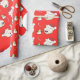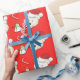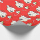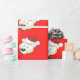 Urso polar de férias bonito em bonés Papais noeis. Neve dançante e cana doce num fundo vermelho alegre