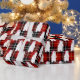 Urso polar com garland estrela em flocos de neve em um fundo de xadrez de tartan vermelho e preto.