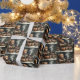 Aproveite este adorável papel de embrulho para as suas festas de Natal. Este desenho de telhas caídas de "Ursos de Natal" fica perto de uma árvore de Natal decorada usando suéteres. O urso maior está segurando uma caneca enquanto se senta ao lado de uma pilha de presentes com uma vela soltando fumaça.