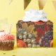 Uvas verdes e roxas, maçãs, e folhas vermelhas e douradas adornam este padrão de colheita, que é uma colagem de designs retrorreflectoras e de outono. As profundas vermelhas, púrpuras (auburgina), maçãs brilhantes, e folhas lindas dão a esta design de cor profunda uma sensação clássica e quente, perfeita para ajudar a embrulhar esse presente. Isso também traria um presente de graças, relacionado ao vinho ou de outono.