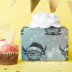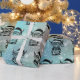 Esta adorável vaca de planalto traz alegria nas suas férias, vestida como papai noel e segurando um cartaz de Natal Feliz.