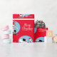 Papel de embrulho do Natal Ocidental com vacas vestindo chapéus de Santa Feliz Texto de Natal Feliz