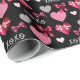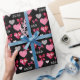Papel De Presente Valentine's Day Hearts and Ribbons Pink Red Black
