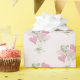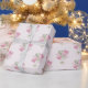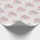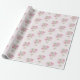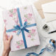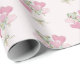 This Valentine's Day gift wrapping paper features balloon bouquets of heart shaped balloons in soft watercolor shades of pink and green with flowers on a pale pink background.