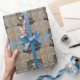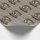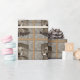 Este papel de envolvimento caracteriza um golden retriever vestido como um vaqueiro que guardara uma arma.