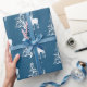 Papel De Presente Veado branco com árvore estilizada em azul e branc