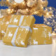Papel De Presente Veado branco com árvore estilizada em ouro e branc