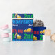 Legal papel azul de embrulho de veículos de construção para uma criança que gosta de carros e caminhões. Adicione o nome do seu filho abaixo do bonitinho escavador e jogue design de caminhão para uma criança que vire dois que gosta de veículos. Embalagem personalizada de presente de segundo aniversário adorável.