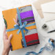 Desenho desenhado à mão de carros elétricos modelo Y SUV de múltiplas cores. Fundo Laranja.
