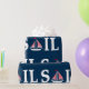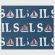 Ilustração de design de texto de vela com decoração de barco à vela em fundo azul escuro. É possível mudar a cor de fundo e adicionar uma diferente à design com sua escolha.