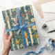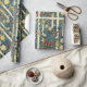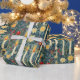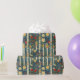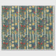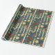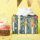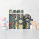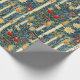 Papel de embrulho festivo com um padrão de velas, folhas e flores.