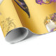Este papel de embrulho muito luxo e roxo retrata um padrão de máscaras de Carnaval veneziana, em preto e branco decorado com ouro e joias roxas. Cada máscara tem joias roxas (ou ametistas) incorporadas em configurações douradas com espirais de brilho dourado e brilho (por favor, note, impresso apenas) ao seu redor. Há também florescimentos roxos com minúsculas versões das máscaras colocadas dentro, tudo sobre um fundo brilhante de gradiente de ouro de bares metálicos.