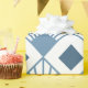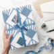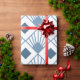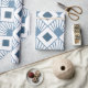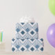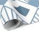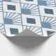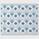 Este papel de embrulho tem um design de arte de diamantes azuis empoeirados com linhas diagonais e diamantes azuis escuros em um campo de branco.