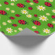 Papel De Presente verde bonito do teste padrão de flor do joaninha e
