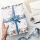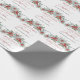 Papel de embrulho de presente de Natal moderno, com elegante verde de inverno e bagas em fundo branco. O design é acentuado com o texto de estilo manuscrito de tendências com a sofisticada saudação "Saudações da Estação". Personalize este belo papel de embrulho de férias com o seu nome.