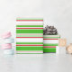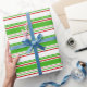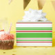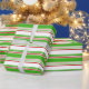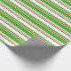 Este design de papel de embrulho apresenta um Natal e feriados com os mesmos temas de padrão verde, branco e vermelho listrado. Um papel de embrulho como este pode ser usado no empacotamento de presentes ou presentes para comemorar um aniversário, um casamento, um aniversário ou qualquer outro evento.