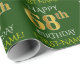 Este design de papel de embrulho apresenta uma mensagem como "HAPPY 68th BIRTHDAY", com o "68º" com aparência falsa/imitação de ouro. Também apresenta um nome personalizado e um fundo de cor verde. Talvez possa ser utilizada quando se dá presentes para o sexagésimo oitavo aniversário de alguém. [~Z0000132]