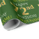 Papel De Presente Verde, Faux Dourado "FELIZ 72º ANIVERSÁRIO"