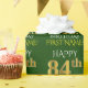 Este design de papel de embrulho apresenta uma mensagem como "FELIZ 84.º ANIVERSÁRIO", com o "84.º" a ter uma aparência falsa/imitação de ouro. Também apresenta um nome personalizado e um fundo de cor verde. Talvez possa ser utilizada quando se dá presentes para o oitenta e quarto aniversário de alguém. [~Z0000132]