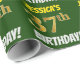 Este design de papel de embrulho apresenta uma mensagem como "37º ANIVERSÁRIO DE JESSICA!", com o "37º" a ter uma aparência falsa/imitada de cor dourada, e com o nome e "ANIVERSÁRIO" numa fonte divertida e ousada. O nome pode ser personalizado, e o fundo é verde colorido. Um papel de embrulho como este poderia talvez ser usado para embrulhar presentes de aniversário que são dados a alguém em comemoração de seus trinta e sete anos de aniversário. [~Z0000208]