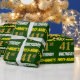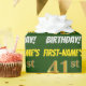 Este design de papel de embrulho apresenta uma mensagem como "PRIMEIRO NOME DA 41rua ANIVERSÁRIO!", com a "41ruas" a ter uma aparência falsa/imitada de cor dourada, e com o nome e "ANIVERSÁRIO" numa letra divertida e ousada. O nome pode ser personalizado, e o fundo é verde colorido. Um papel de embrulho como este poderia talvez ser usado no embrulho de presentes de aniversário que estão sendo dados a alguém em comemoração de seus quarenta anos de primeiro aniversário. [~Z0000208]