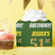 Este design de papel de embrulho apresenta uma mensagem como "JESSICA'S 51rua BIRTHDAY!", com as "51ruas" a terem uma aparência falsa/imitada de cor dourada, e com o nome e "BIRTHDAY" numa letra divertida e ousada. O nome pode ser personalizado, e o fundo é verde colorido. Um papel de embrulho como este poderia talvez ser usado para embrulhar presentes de aniversário que são dados a alguém em comemoração de seus cinquenta anos de primeiro aniversário. [~Z0000208]