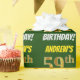 Este design de papel de embrulho apresenta uma mensagem como "ANDREW'S 59th BIRTHDAY!", com o "59º" a ter uma aparência falsa/imitada de cor dourada, e com o nome e "BIRTHDAY" numa fonte divertida e ousada. O nome pode ser personalizado e o fundo tem cor verde. Um papel de embrulho como este poderia talvez ser usado para embrulhar presentes de aniversário que são dados a alguém em comemoração de seus cinquenta e nono anos. [~Z0000208]
