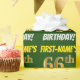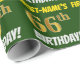 Este design de papel de embrulho apresenta uma mensagem como "PRIMEIRO NOME DO 66º ANIVERSÁRIO!", com o "66º" a ter uma aparência falsa/imitada de cor dourada, e com o nome e "ANIVERSÁRIO" numa fonte divertida e ousada. O nome pode ser personalizado e o fundo tem cor verde. Um papel de embrulho como este poderia talvez ser usado para embrulhar presentes de aniversário que são dados a alguém em comemoração do seu sessenta sexto aniversário. [~Z0000208]