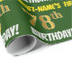 Este design de papel de embrulho apresenta uma mensagem como "FIRST-NAME'S 78th BIRTHDAY!", com o "78º" a ter uma aparência falsa/imitada de cor dourada, e com o nome e "BIRTHDAY" numa fonte divertida e ousada. O nome pode ser personalizado, e o fundo é verde colorido. Um papel de embrulho como este poderia talvez ser usado no embrulho de presentes de aniversário que são dados a alguém em comemoração de seus setenta e oito anos. [~Z0000208]