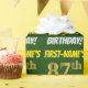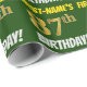 Este design de papel de embrulho apresenta uma mensagem como "FIRST-NAME'S 87th BIRTHDAY!", com o "87º" a ter uma aparência falsa/imitada de cor dourada, e com o nome e "BIRTHDAY" numa fonte divertida e ousada. O nome pode ser personalizado, e o fundo é verde colorido. Um papel de embrulho como este poderia talvez ser usado no embrulho de presentes de aniversário que são dados a alguém em comemoração do seu oitenta e sétimo aniversário. [~Z0000208]
