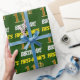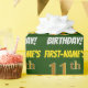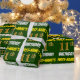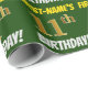 Este design de papel de embrulho apresenta uma mensagem como "PRIMEIRO NOME DO 11 DE ANIVERSÁRIO!", com o "11" a ter uma aparência falsa/imitada de cor dourada, e com o nome e "ANIVERSÁRIO" numa letra divertida e ousada. O nome pode ser personalizado, e o fundo é verde colorido. Um papel embrulhante como este poderia talvez ser usado no empacotamento de presentes de aniversário que são dados a alguém em comemoração do seu décimo primeiro aniversário. [~Z0000208]