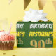 Este design de papel de empacotamento apresenta uma mensagem como "PRIMEIRO-ANIVERSÁRIO!", com o "90" a ter uma aparência falsa/imitada de cor dourada, e com o nome e "ANIVERSÁRIO" numa letra divertida e ousada. O nome é personalizável e o fundo é verde colorido. Um papel de embrulho como este poderia talvez ser usado para embrulhar presentes de aniversário que são dados a alguém em comemoração de seu nonagésimo aniversário. [~Z0000208]