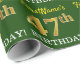 Este design de papel de embrulho apresenta uma mensagem como "FirstName’s 47th BIRTHDAY!", com o "47th" a ter uma aparência de cor falsa/imitada em ouro. O nome pode ser personalizado e o fundo tem cor verde. Talvez possa ser utilizado quando se dá presentes para o quadragésimo sétimo aniversário de alguém. [~Z0000179]