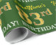 Este design de papel de embrulho apresenta uma mensagem como "FirstName’s 83rd BIRTHDAY!", com o "83º" a ter uma aparência falsa/de cor dourada. O nome pode ser personalizado e o fundo tem cor verde. Talvez possa ser utilizado quando se dá presentes para o oitenta e terceiro aniversário de alguém. [~Z0000179]
