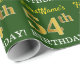 Este design de papel de embrulho apresenta uma mensagem como "FirstName’s 54th BIRTHDAY!", com o "54º" a ter uma aparência falsa/de cor dourada. O nome pode ser personalizado e o fundo tem cor verde. Talvez possa ser utilizado quando se dá presentes para o cinquenta e quarto aniversário de alguém. [~Z0000179]