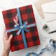 Embalagem de presente de feriado personalizada com um padrão de xadrez de verificação de búfalos vermelho e preto. Use as ferramentas de design para escolher qualquer cor de fundo ou adicione seu próprio texto e fotos para design seu papel de moldagem de Natal exclusivo.