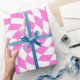 Vestido moderno e moderno, design psíquico em cor rosa e branca. Refletindo o padrão rosa e branco do novo ano. Verificações retroativas, papel de embrulho de festa de aniversário verificado.