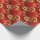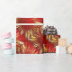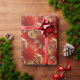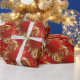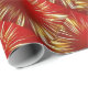 O papel de enrolar com design de listras vermelhas e ouro é perfeito para presentes.