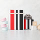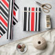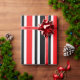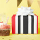 Este papel de embrulho é coberto por listras vermelhas e pretas. Bom para muitas ocasiões.
