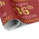 Este design de papel de embrulho apresenta uma mensagem como "FELIZ 36º ANIVERSÁRIO", com o "36º" a ter uma aparência falsa/imitação de ouro. Ele também apresenta um nome que pode ser personalizado, e um fundo de cor vermelha. Talvez possa ser utilizado quando se dá presentes para o trigésimo sexto aniversário de alguém. [~Z0000131]