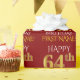 Este design de papel de embrulho apresenta uma mensagem como "HAPPY 64th BIRTHDAY", com o "64º" com aparência falsa/imitação de ouro. Ele também apresenta um nome que pode ser personalizado e um fundo de cor vermelha. Talvez possa ser utilizada quando se dá presentes para o sexagésimo quarto aniversário de alguém. [~Z0000131]