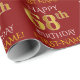 Este design de papel de embrulho apresenta uma mensagem como "HAPPY 68th BIRTHDAY", com o "68º" com aparência falsa/imitação de ouro. Também apresenta um nome personalizado e um fundo de cor vermelha. Talvez possa ser utilizada quando se dá presentes para o sexagésimo oitavo aniversário de alguém. [~Z0000131]