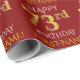 Este design de papel de embrulho apresenta uma mensagem como "FELIZ 73º ANIVERSÁRIO", com o "73º" a ter uma aparência falsa/imitação de ouro. Também apresenta um nome personalizado e um fundo de cor vermelha. Talvez possa ser utilizado quando se dá presentes para o setenta e terceiro aniversário de alguém. [~Z0000131]