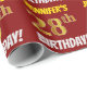 Este design de papel de embrulho apresenta uma mensagem como "JENNIFER'S 28th BIRTHDAY!", com o "28º" a ter uma aparência falsa/imitada de cor dourada, e com o nome e "BIRTHDAY" numa fonte divertida e ousada. O nome é personalizável e o fundo é vermelho colorido. Um papel de embrulho como este poderia talvez ser usado para embrulhar presentes de aniversário que são dados a alguém em comemoração de seus vinte e oito anos de aniversário. [~Z0000204]